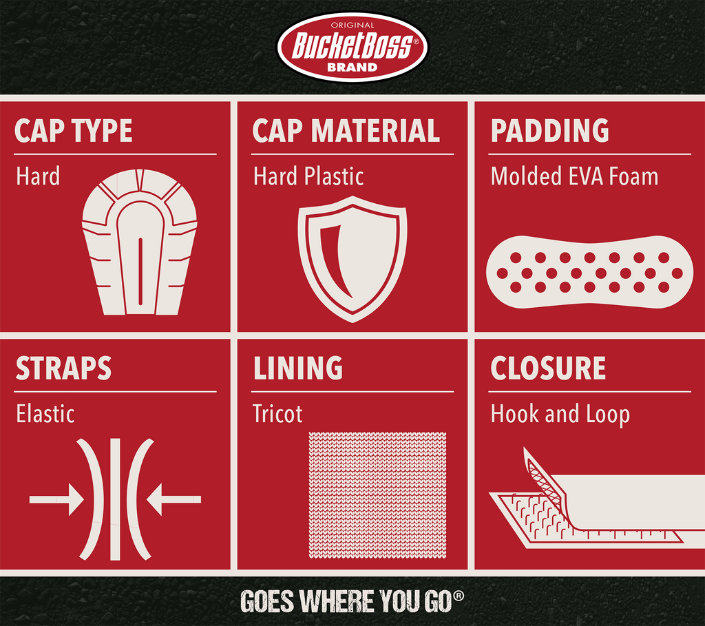 The Hard Shell Knee Pads feature a hard cap made for swiveling and sliding. These knee pads feature: foam padding, tricot lining, and two elastic straps with hook and loop closure, making them lightweight and easy to use. The strap system is comprised of a neoprene bottom strap that tightens firmly for support, and an elastic top strap that holds the pad in place without causing discomfort. Both straps are adjustable and attach with a buckle post closure. The Hard Shell Knee Pads feature a hard plastic cap made for swiveling and sliding and are constructed with a thick EVA foam pad making them lightweight and easy to use. The Bucket Boss knee saver knee pads are great for swivel and slide applications like flooring, concrete and more.