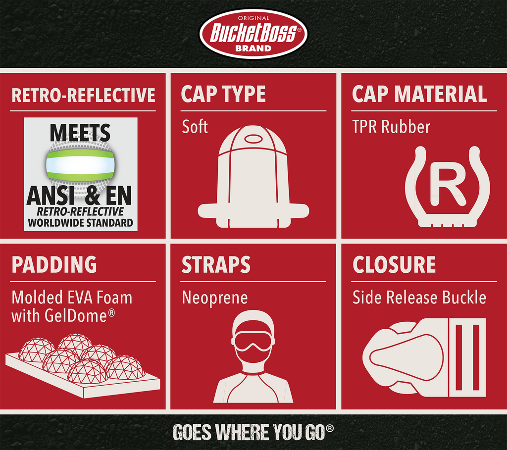 From the Knee Keeper HV series, the latest and highest level Bucket Boss knee pads. All of the Knee Keeper HV knee pads feature 3M™ Scotchlite™ Reflective that meets ANSI and EN1150 Retro-Reflective worldwide standards for high-visibility jobsite safety. The Molded GelDome Nonmar Knee Pads boast an ergonomically-molded foam pad designed to provide maximum padding with minimum weight, enhanced with a gel pad for extra long-lasting support, and is ideal for nonmarring flooring applications. An innovative tri-buckle strap system on the knee pad provides for fine-tuning your fit for additional comfort. The strap system is comprised of a web bottom strap that tightens firmly for support, and an elastic top strap that holds the pad in place without causing discomfort, each of these attached to a neoprene pad to comfort the back of the knee. A third elastic strap fine tunes the fit. Each strap on this flooring knee pad secures with an adjustable side-release buckle for a precise fit.