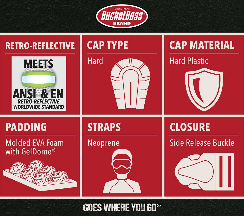 From the Knee Keeper HV series, the latest and highest level Bucket Boss knee pads. All of the Knee Keeper HV knee pads feature 3M™ Scotchlite™ Reflective that meets ANSI and EN1150 Retro-Reflective worldwide standards for high-visibility jobsite safety. The Molded GelDome Swivel Knee Pads boast an ergonomically molded foam pad designed to provide maximum padding with minimum weight, enhanced with a gel pad for extra, long lasting support, and is ideal for swiveling or sliding applications such as flooring. An innovative tri-buckle strap system provides for fine-tuning your fit for additional comfort. The strap system on this knee pad is comprised of a web bottom strap that tightens firmly for support, and an elastic top strap that holds the pad in place without causing discomfort, each of these attached to a durable neoprene pad to comfort the back of the knee. A third elastic strap fine tunes the fit. Each strap secures with an adjustable side-release buckle for a precise fit. Each knee pad measures 6 in. x 8 in. x 10 in. (L x W x H).