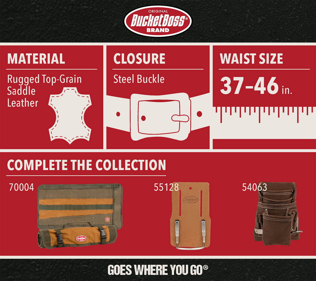 From the Classic Leather Series, the Saddle Leather Belt features 2 in. wide, rugged saddle leather. The belt is reinforced with metal rivets. The belt also uses a two-prong steel roller buckle to secure waist sizes 37 in. to 46 in.
