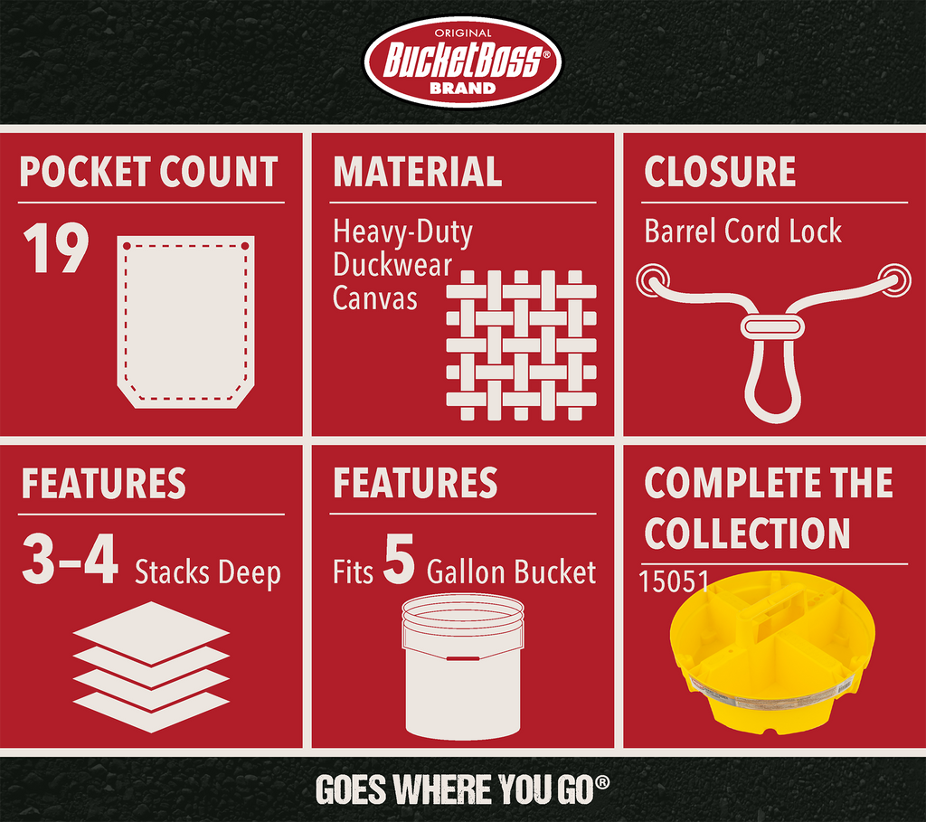“Bucket” is in our name. We work hard to be the “Boss” of tool organization. In 1987, we innovated a new tool organizer—the Original Bucket Boss. Today, our robust Bucket Organizers collection keeps the spirit of our brand strong. Rethink your five-gallon bucket with Bucket Boss, and see how we stack up.