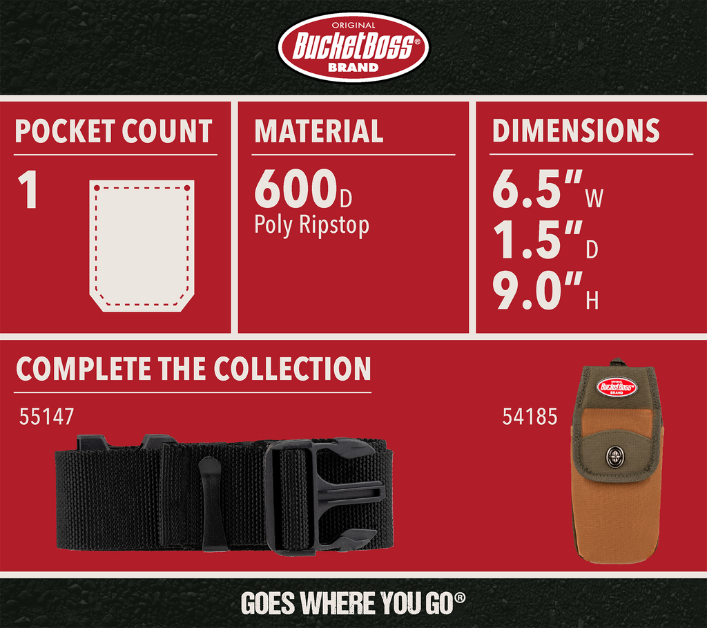 The Tape Measure Pouch can hold up to a 50 ft. tape measure or can be used as an extra storage pouch. The adjustable strap accommodates most waist sizes and has a quick-release buckle. The exterior loop allows the pouch to slip over most standard width belts (belt not included). Makes a great gift for the DIYer in home or family. The Tape Measure Pouch is an ideal option for customized tool storage on the go. This pouch is designed to carry small parts and fasteners or a 50 ft. tape measure.